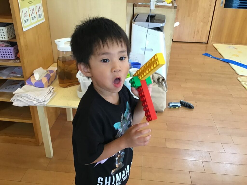 ブロックを歯ブラシに見立てて、今日学んだことを遊びに取り入れている姿もありました。
