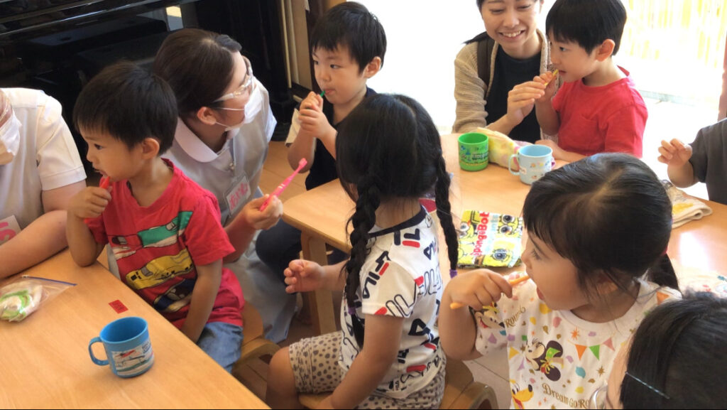 ひよし保育園では、6月5日にブラッシング指導がありました。