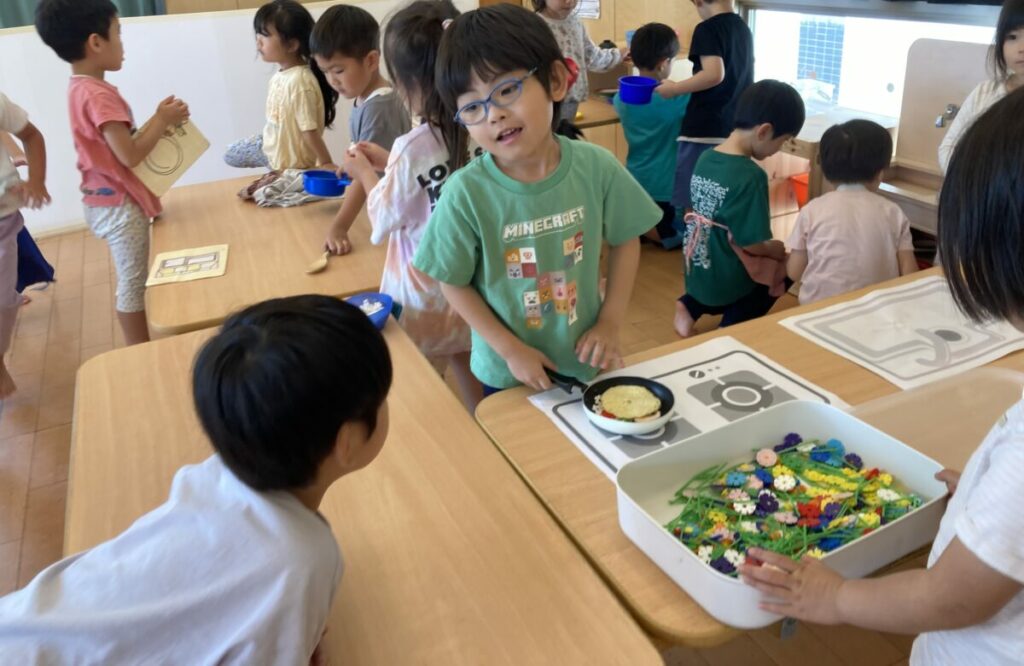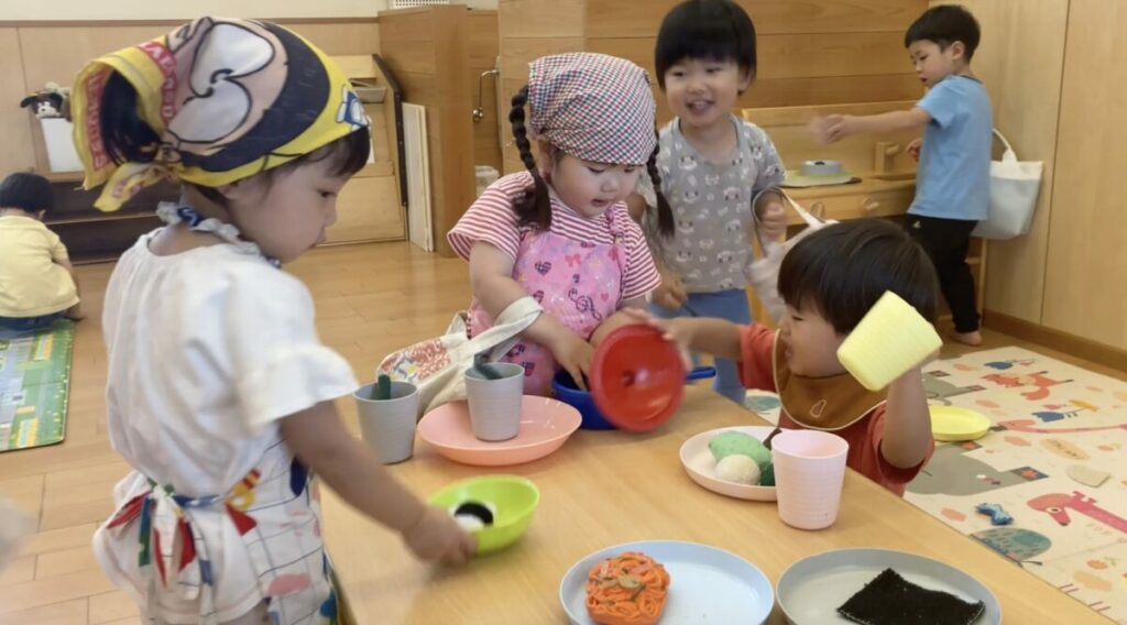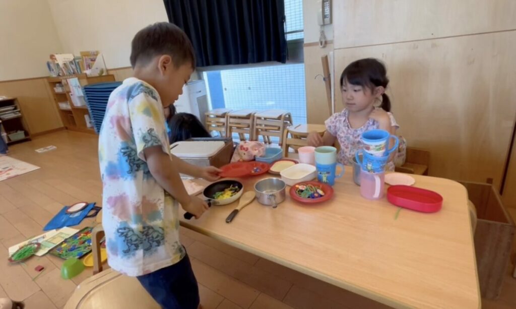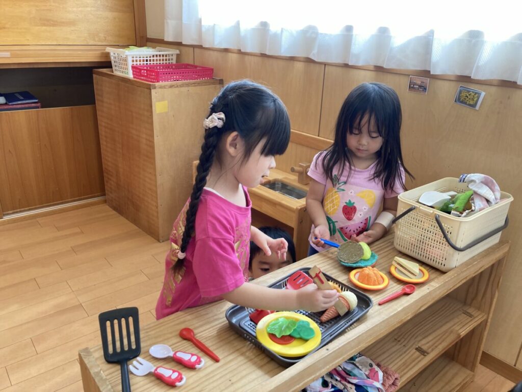 3歳児、4歳児、5歳児クラスにはキッチンを設置し、ままごとコーナーができました。