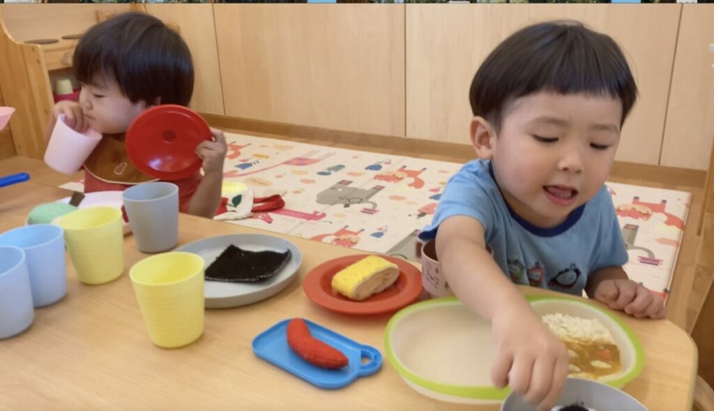 ままごと研修で学んだことを活かし、幼児クラスの保育環境の見直しを行い、おままごとコーナーを設置しました。