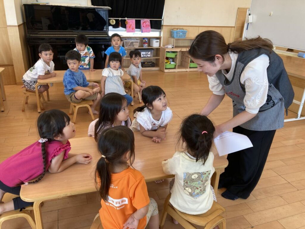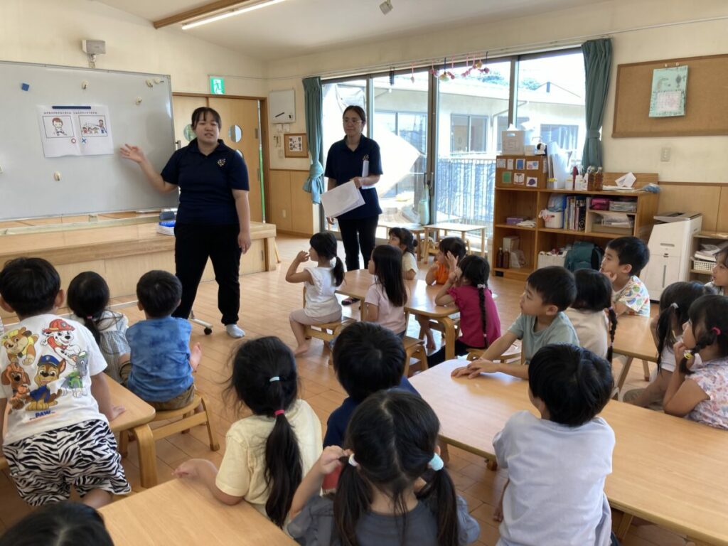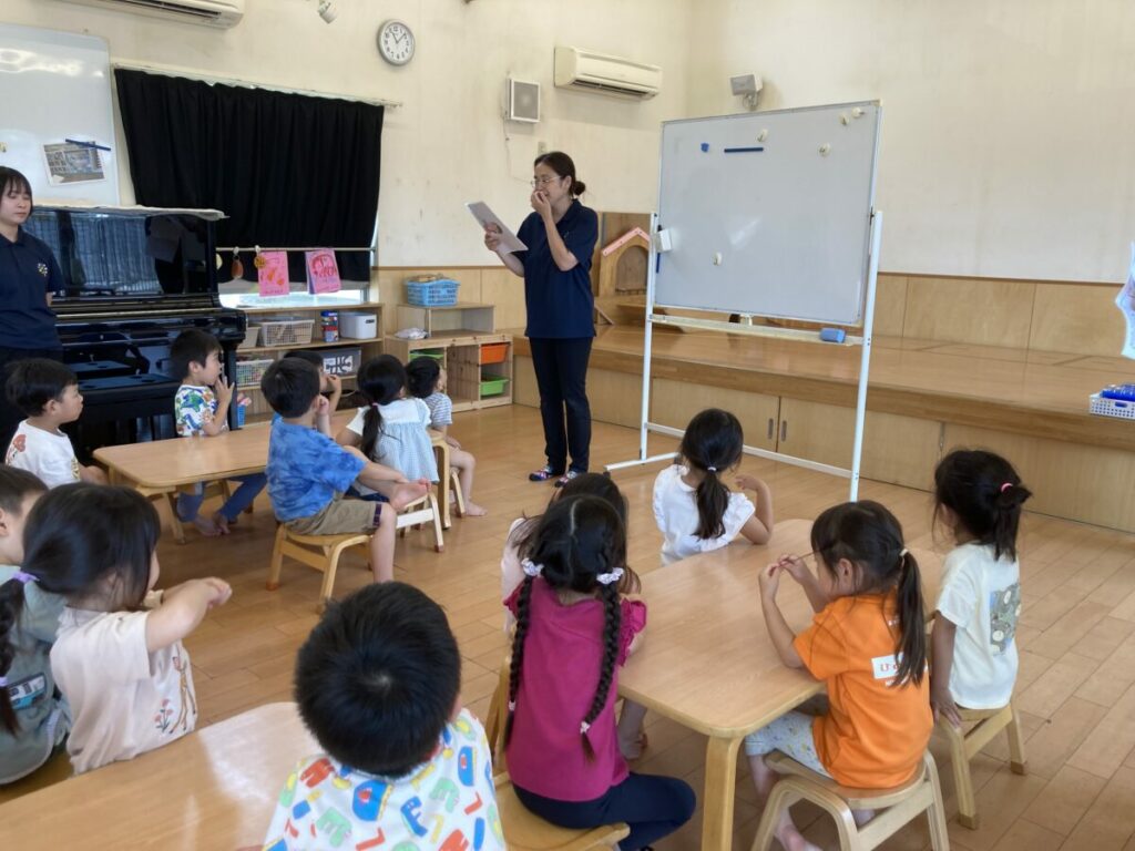 「夏の過ごし方」について保育士・栄養士・看護師(三者連携)より話を行いました。