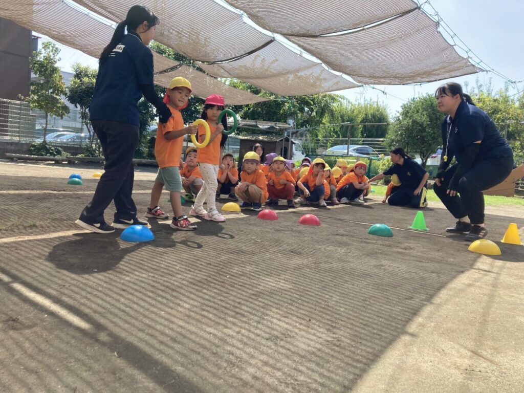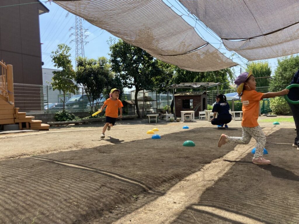 リレーでは、最初は「勝ちたい」という気持ちが強く、バトンを焦って落としてしまうこともありましたが、運動遊びを通して、「バトンをつなぐ遊び」であることを少しずつ理解していきました。繰り返し行う中で、丁寧にバトンを渡す姿や、仲間の走る姿に「がんばれー」と声援を送る姿も増えてきています。