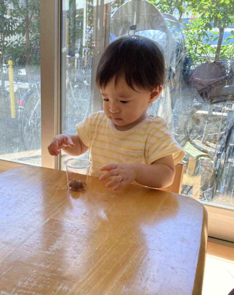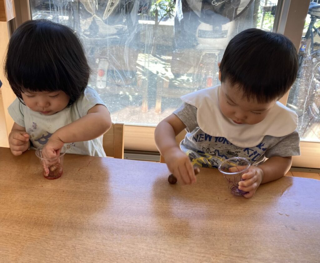 川崎市幸区「すずらん組 今月の制作〜どんぐりマラカス〜」0歳児