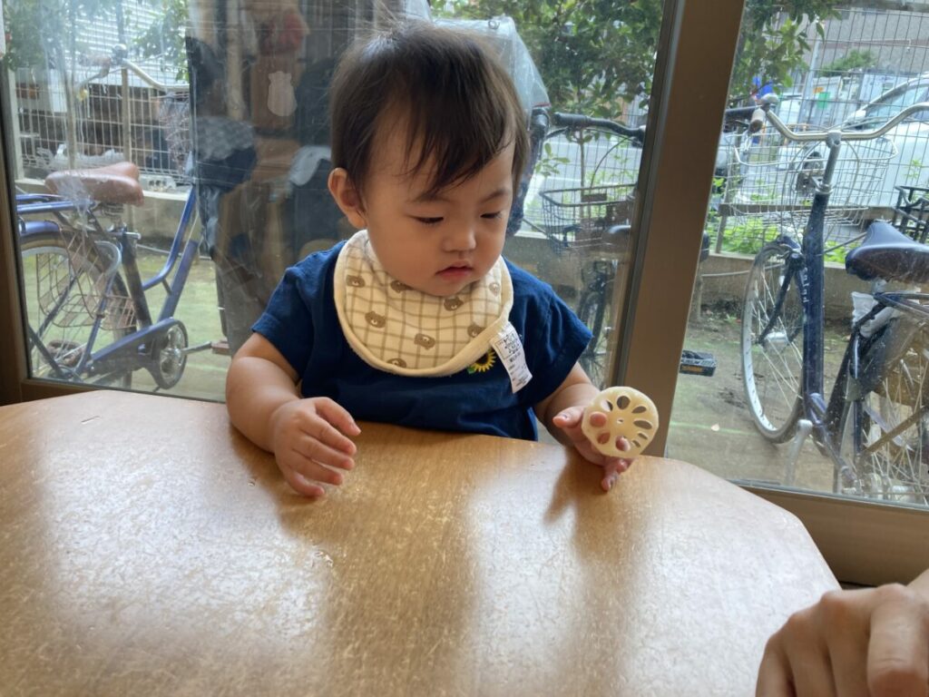 今月の食育では、秋の食材「蓮根」に触れました。