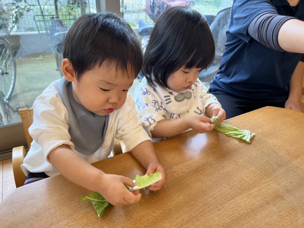 食材に触れる体験を通して、食への興味が少しずつ広がっていく様子が見られました。