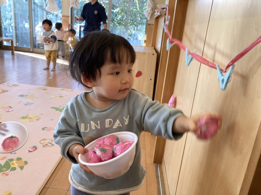 その様子から、「みんなで苺を作って、いちご狩りごっこをしてみよう!」ということになりました。