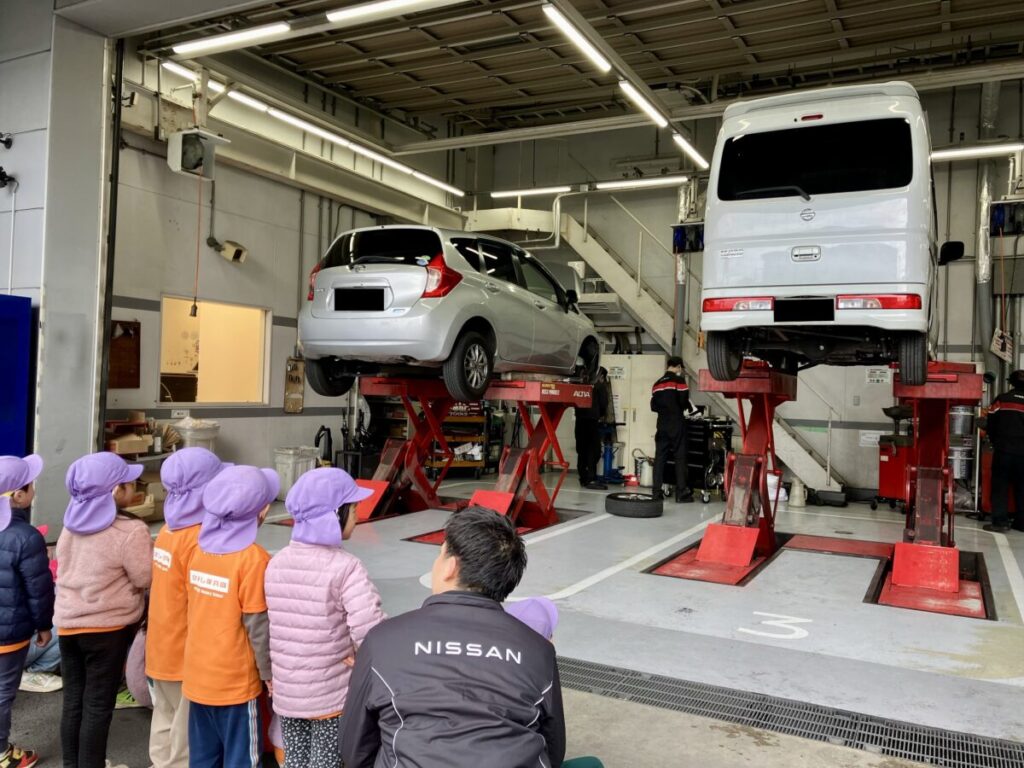 先日、4・5歳児の子どもたちと一緒に、日産 南加瀬店へ見学に行ってきました。