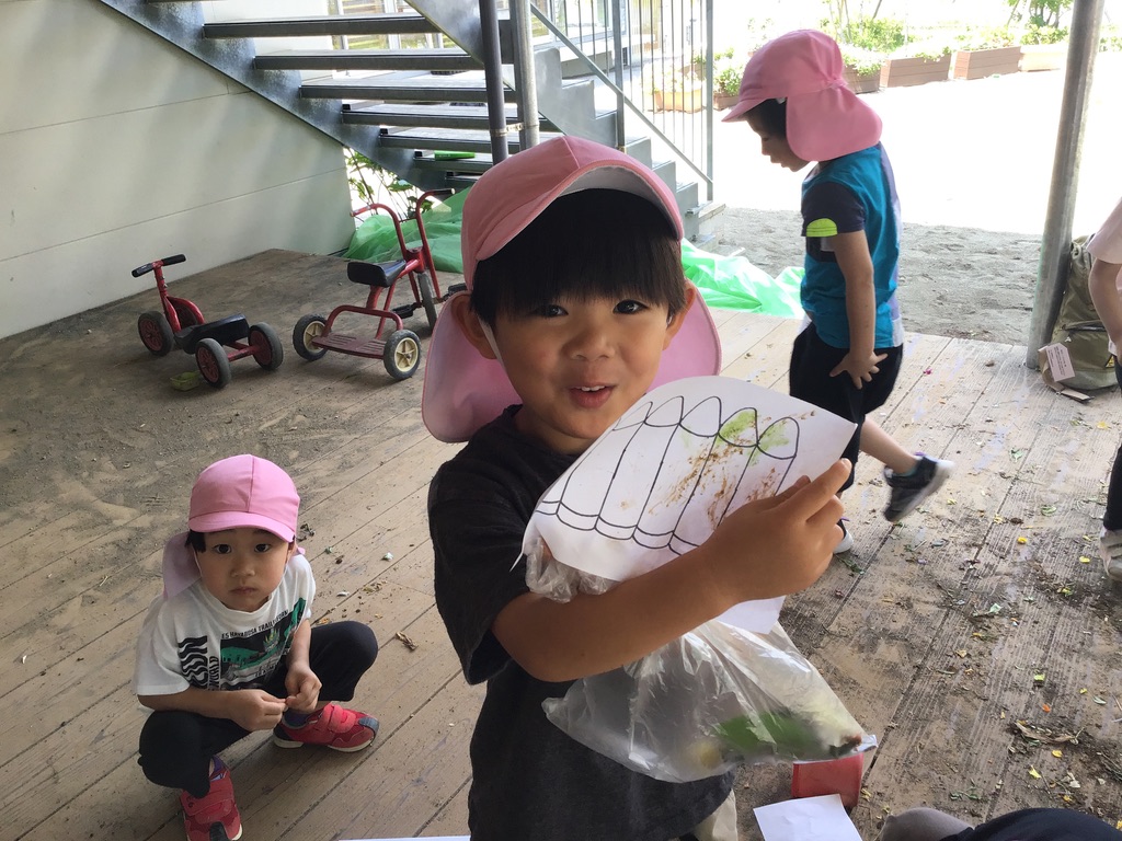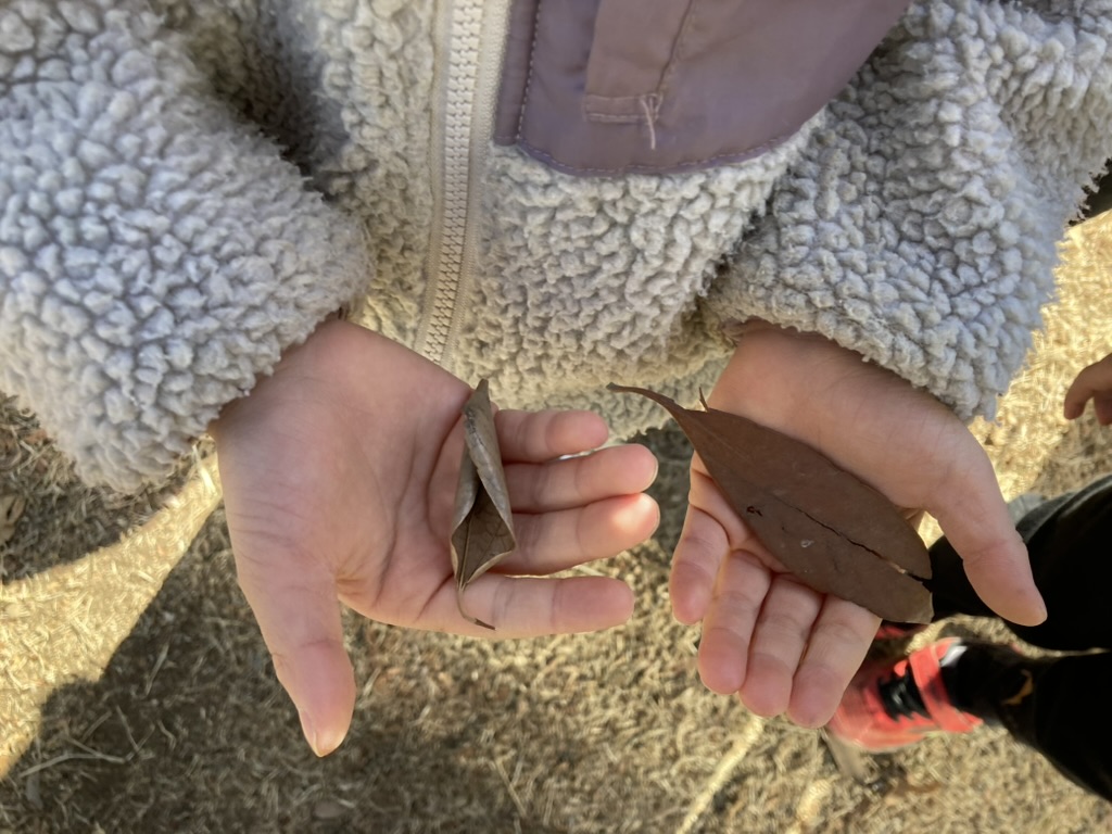 丸まっているものとピンと張っているものの違いに気づき葉っぱの観察をしました。