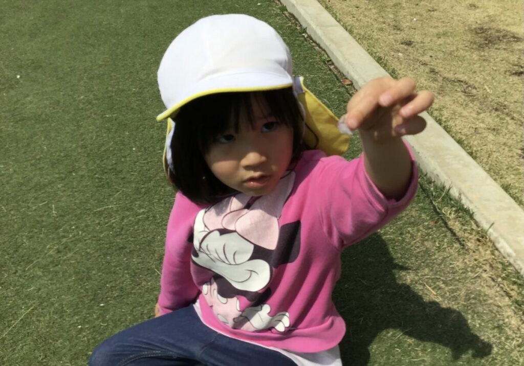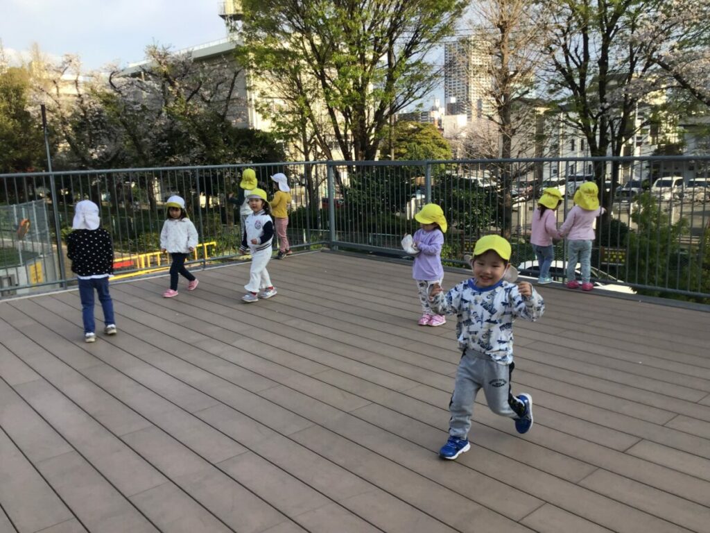 こすもす組になって初めての戸外遊びでは、