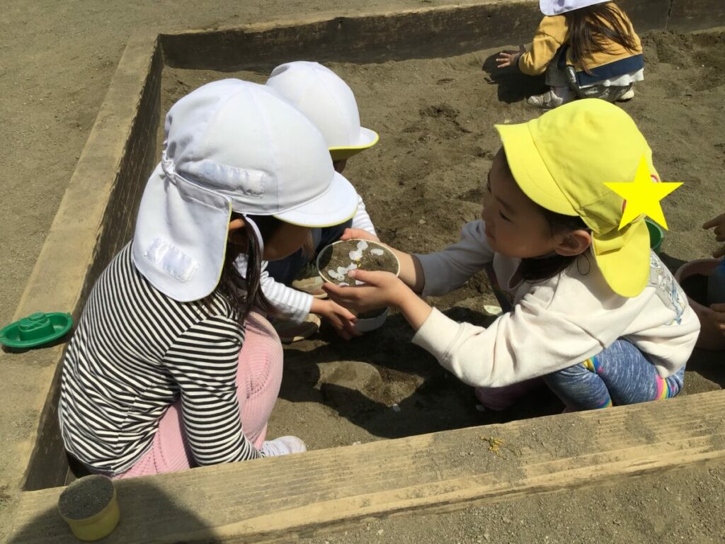 ご飯に見立ててご馳走しあったりする様子が見られました。