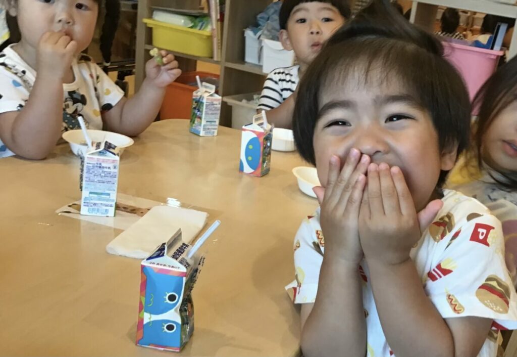 「自分でむいたそら豆だ」と、嬉しそうに食べる姿や、口に入れると苦そうな表情を浮かべる姿もありました。五感を使った体験を通して、そら豆の存在がぐっと身近に感じられた一日でした。