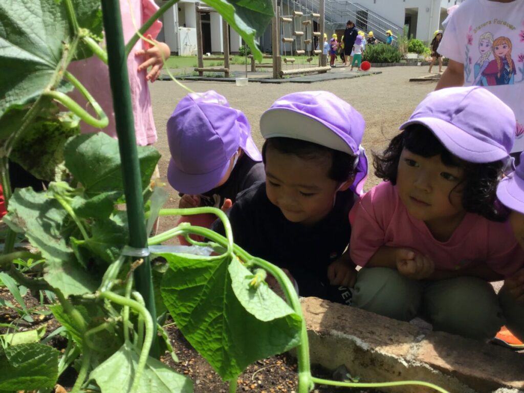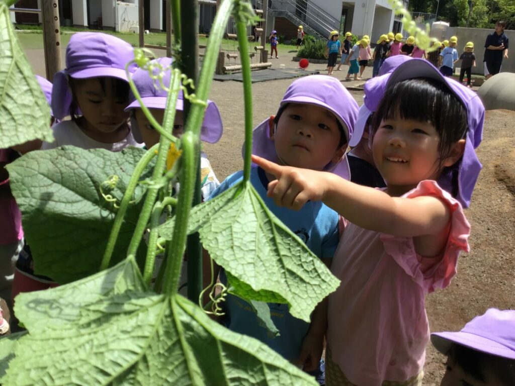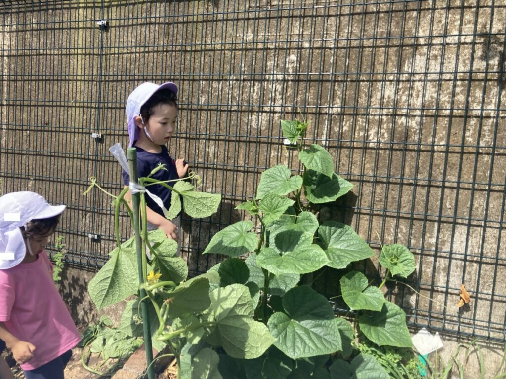 たんぽぽ組の子どもたちが、育てているきゅうりに水やりに行ったときのこと。