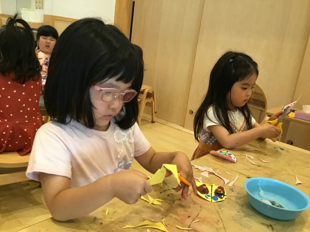 みんなでハサミの持ち方・使い方の確認をした後、