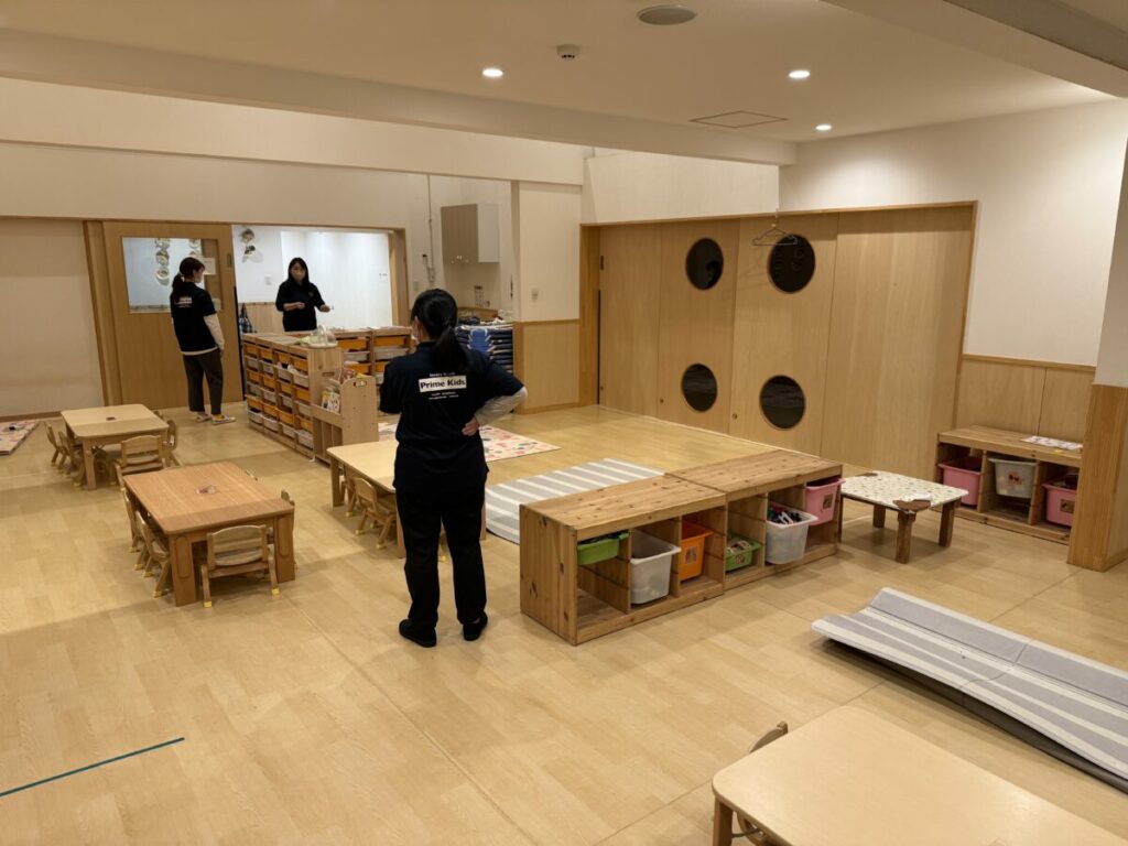 絵本コーナーやブロックコーナー、机上遊びコーナー、ままごとコーナーが完成。