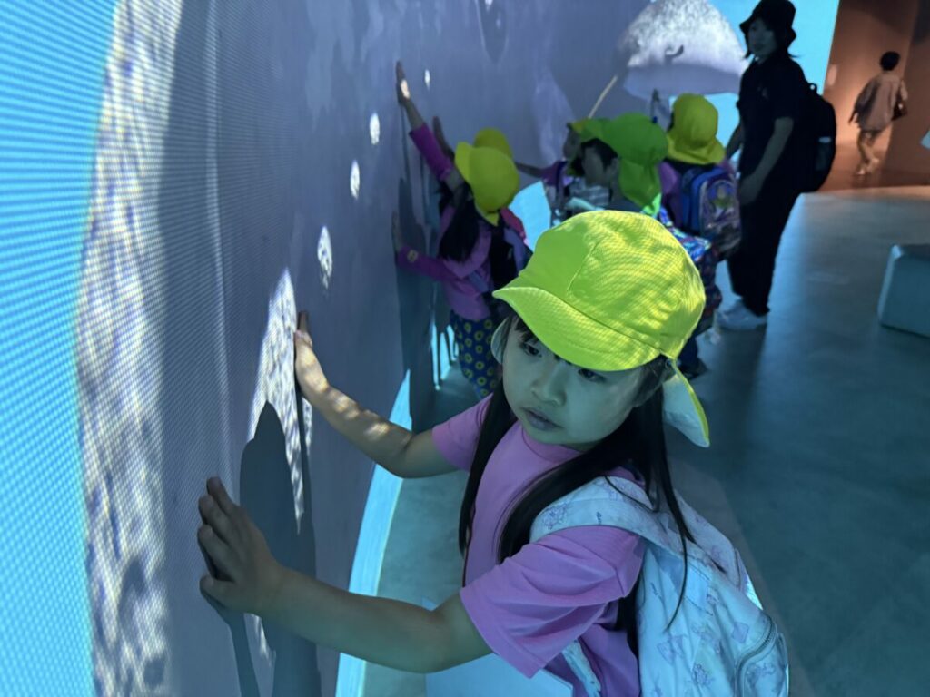 スクリーンに映るさまざまなクジラやイルカにタッチをしたり、