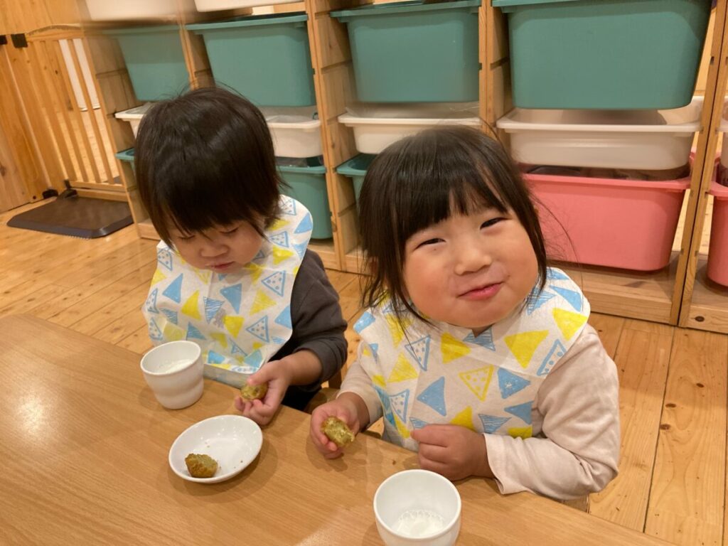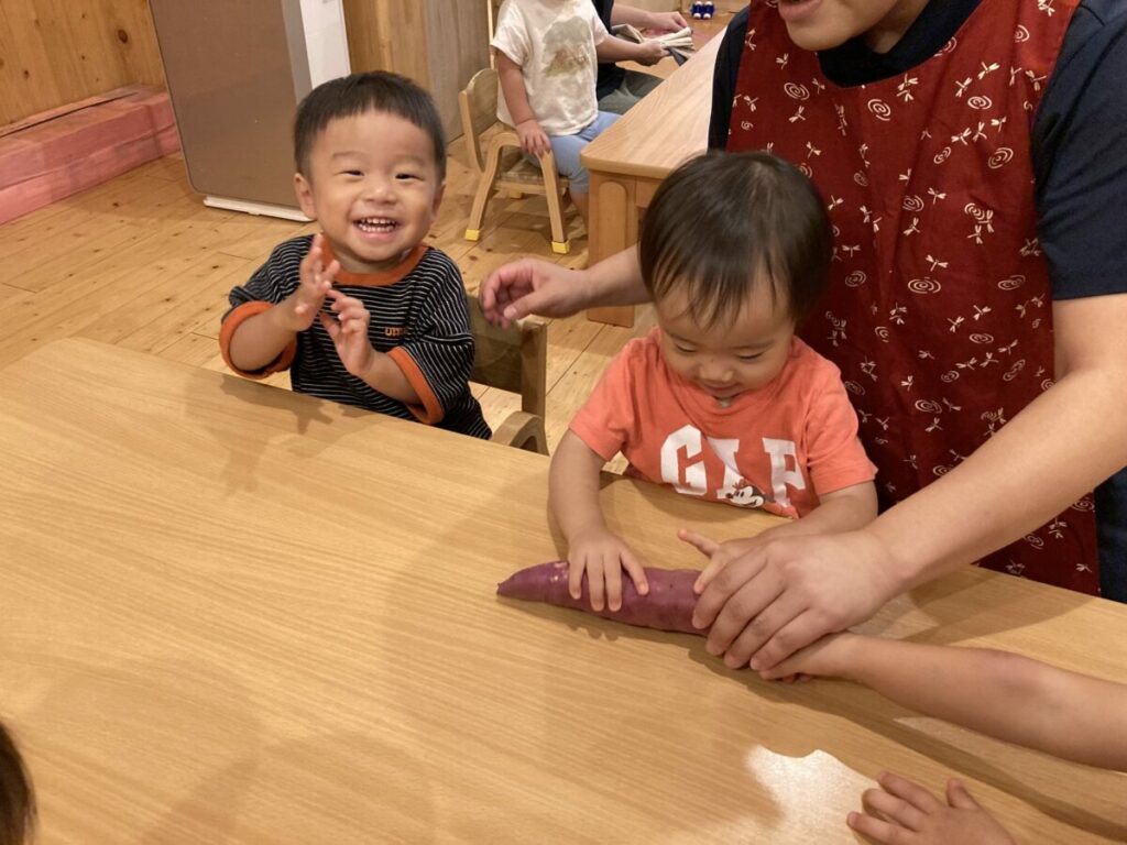 また、実際にその日のおやつにカボチャとさつまいもが出てきました。