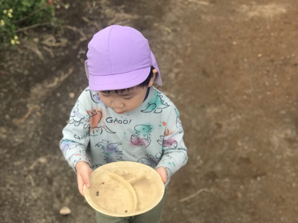 「あ、虫いた!」「ぱんぽぽ(たんぽぽ)あった!」「これは何?」と小さな春の訪れに目を向ける子どもたち。