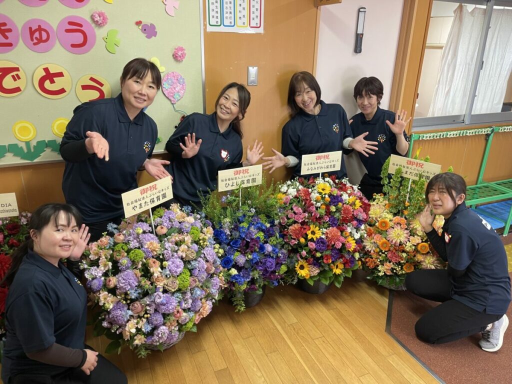 お祝いに、ぷらいむキッズの各園からお花が届きました。