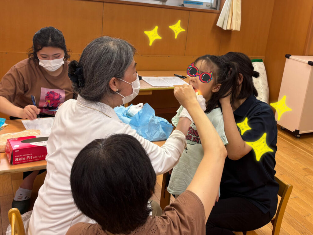 先日、園で年に一度の歯科検診がありました。まだ歯が生えそろっていない0歳児から、永久歯に生え変わり始める幼児クラスの子どもたちまで、全員を丁寧に診ていただきました。