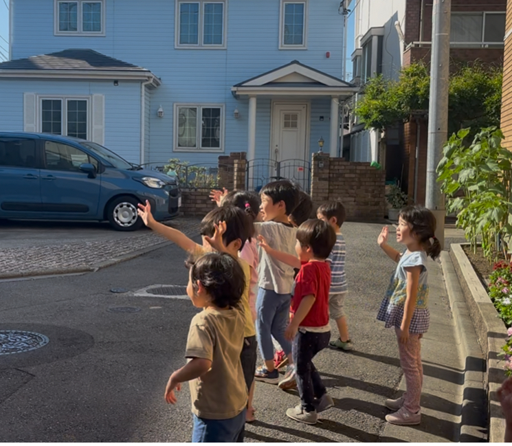 チョウチョは、幼児クラスの子どもたちが協力して外に逃がしてあげました。逃してもすぐに遠くへは飛んでいかず、子どもたちの周りをひらひらと飛んだり、生まれた場所(花壇)のお花の蜜を吸ったりとチョウチョも別れを惜しんでいるようでした。最後は「また来てね」「ばいばーい」と飛び立っていくチョウチョをみんなで見送りました。