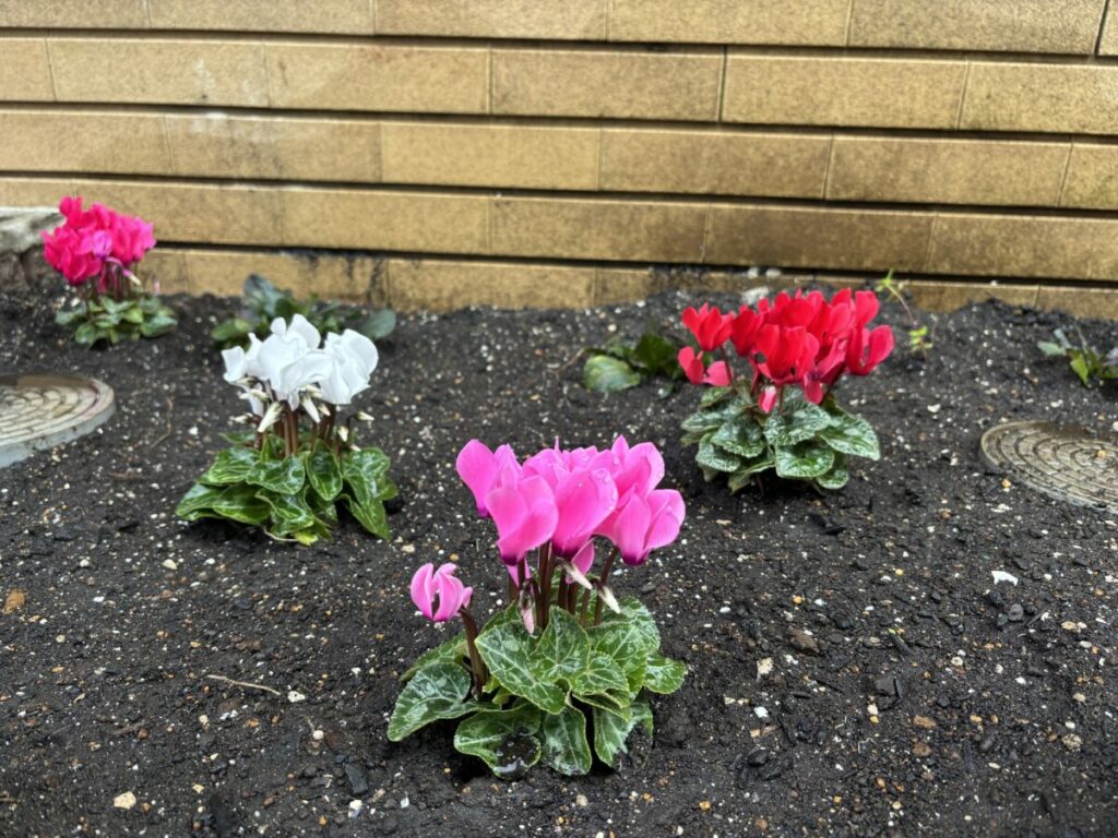 そして今回、花壇には、パンジー、ガーデンシクラメン、チェリーセージ、ハボタン(葉牡丹)ジュウニヒトエ(十二単)、ハマナデシコ(浜撫子)、ゼラニウムなど色とりどりの仲間を迎えました。