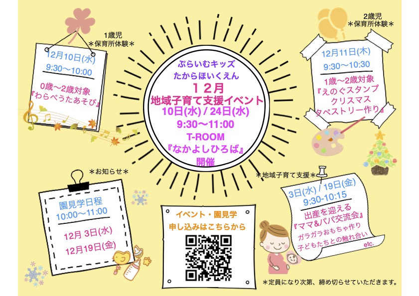 12 012025 12月地域子育て支援イベント ブログ この記事のタイトルとURLをコピーする 地域子育て支援イベントを開催します。 参加希望の方はホームページからお申し込みください。 たくさんのご参加をお待ちしております。 この記事のタイトルとURLをコピーする お知らせ, ブログ 保育園, 品川区, 園見学, 認可保育園 自然あそび『森の贈り物・木の実あそび』〜どんぐりころころコース遊び〜 前の記事 0歳児 食育『さつまいもに触れてみる』 次の記事