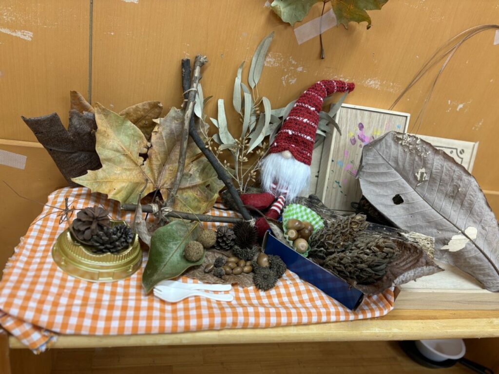 先日、こびとさんから贈られた木の実のプレゼントで、たくさんの自然遊びを楽しみました。豊かな自然の恵みに触れ、「また会いたいね」と、子どもたちの小さなつぶやきが園内に響いていました。