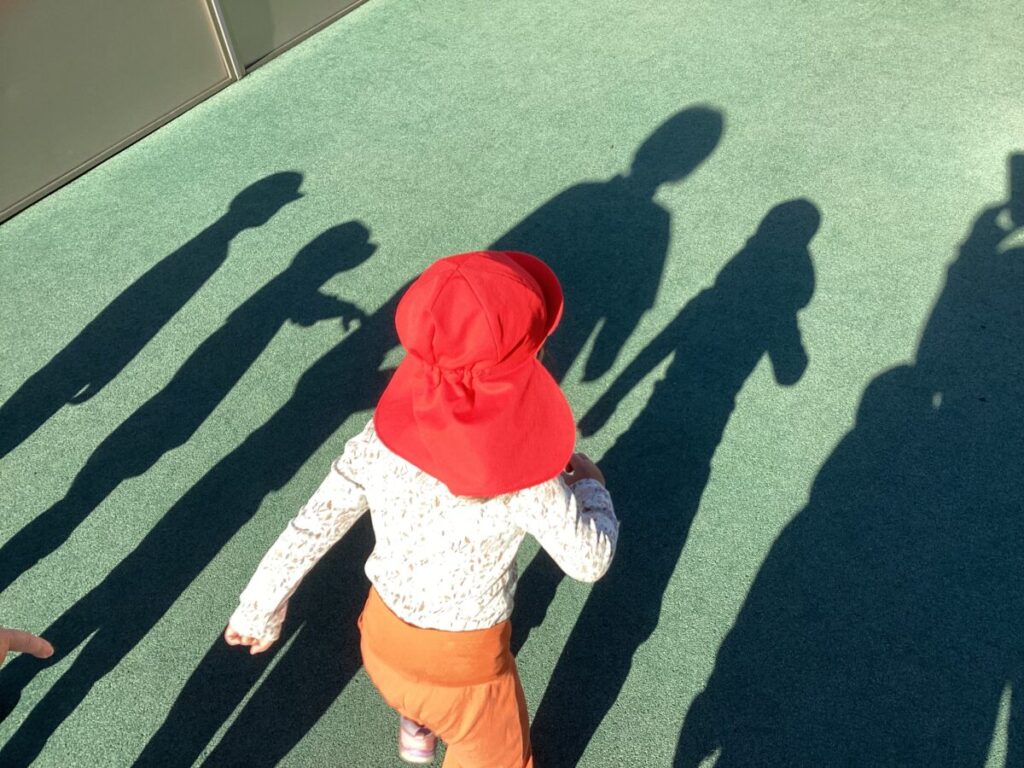 「まっくろくん」が登場する影の紙芝居を見たあと、実際に影を見て遊びました。「あっ!まっくろくんいたよ!」と影に気づき、友だちと並んで影を比べたり、手でキツネを作って「ごはんだよ」とごっこ遊びに発展したりする姿も見られました。見たこと・感じたことが、そのまま遊びへとつながっていく様子が印象的でした。