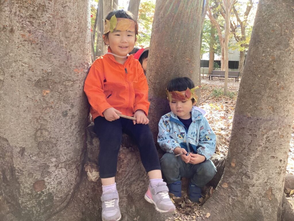 秋の自然にたくさん触れながら、さまざまな遊びを楽しみました。