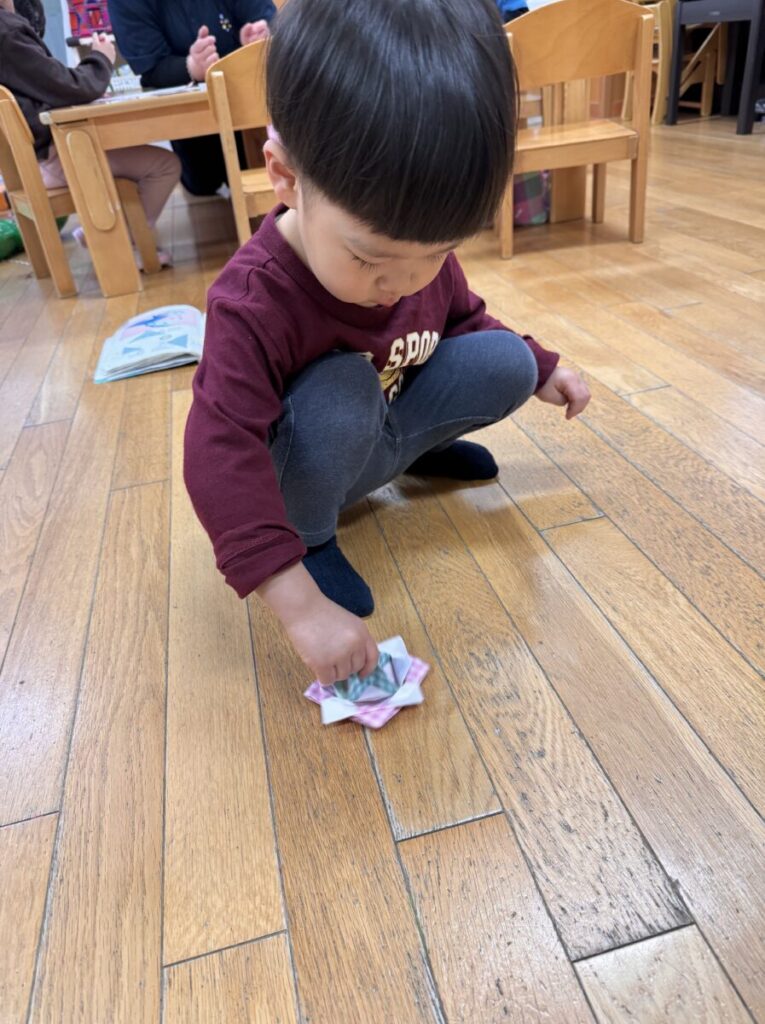 今は各クラスで、凧揚げやこま回しなど、お正月ならではの遊びを楽しんでいるところです。