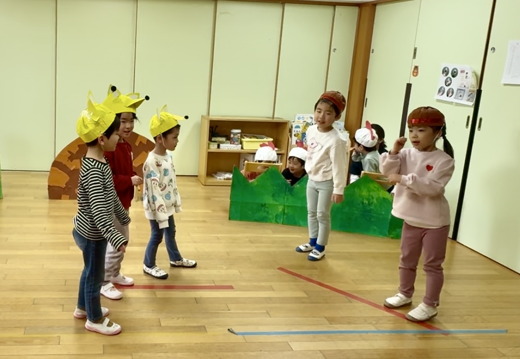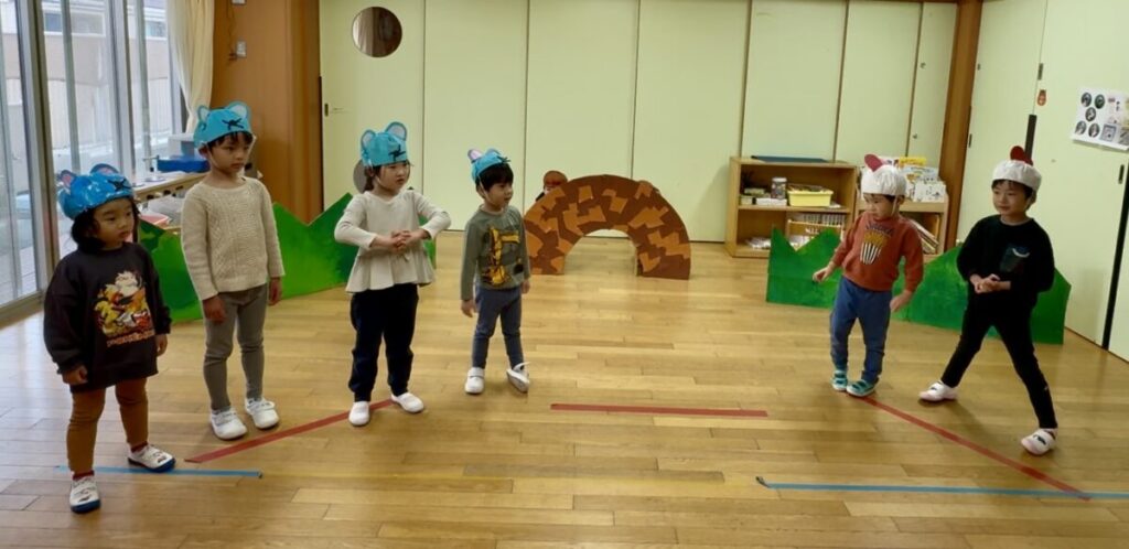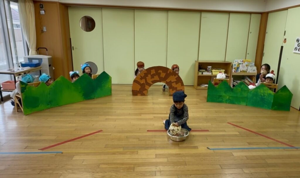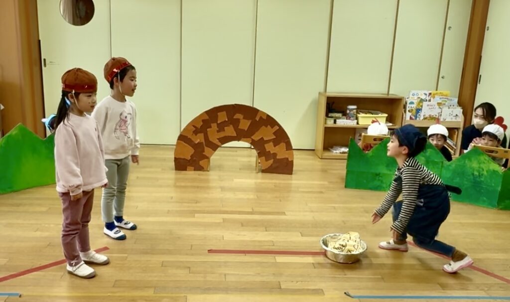 今回演じたのは、子どもたちが「繰り返しの場面がおもしろい!」と選んだお気に入りの物語。セリフや動きも、みんなでアイデアを出し合いながら少しずつ形にしてきました。