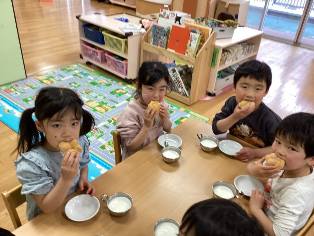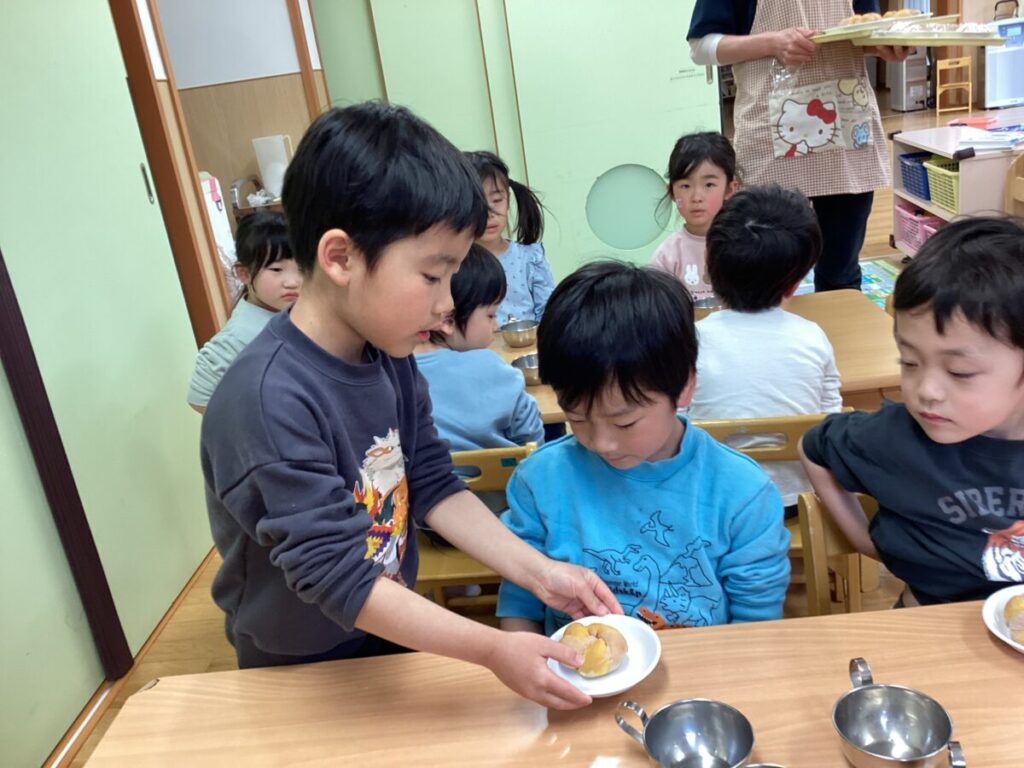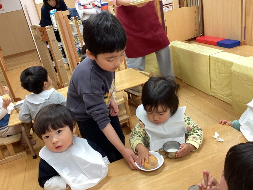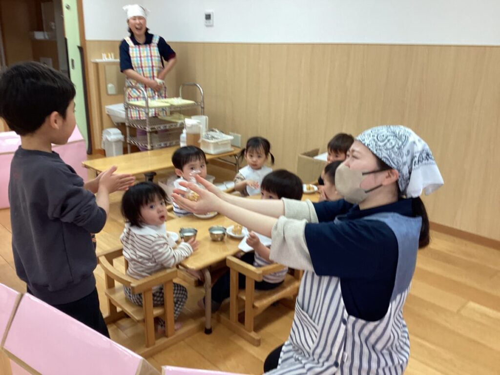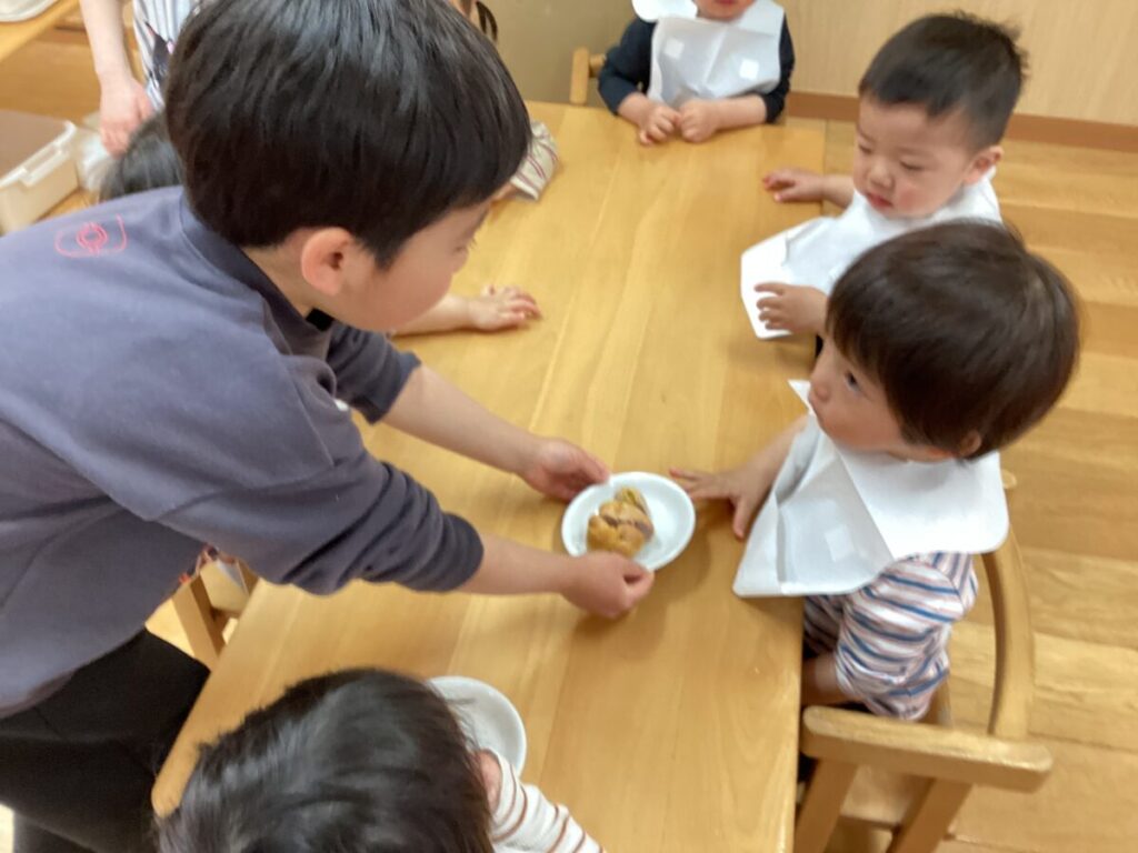 大好きな年長さんから心のこもったパンをもらって、小さいクラスの子も、一緒に過ごしてきた幼児さんも、みんなとっても嬉しそう!
