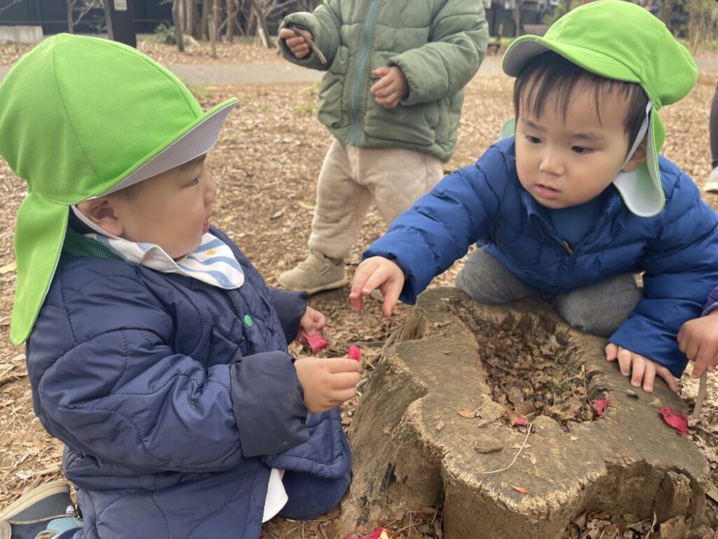 自然の中で、子どもたちは興味を持ったものに自分から関わり、遊びを広げていました。