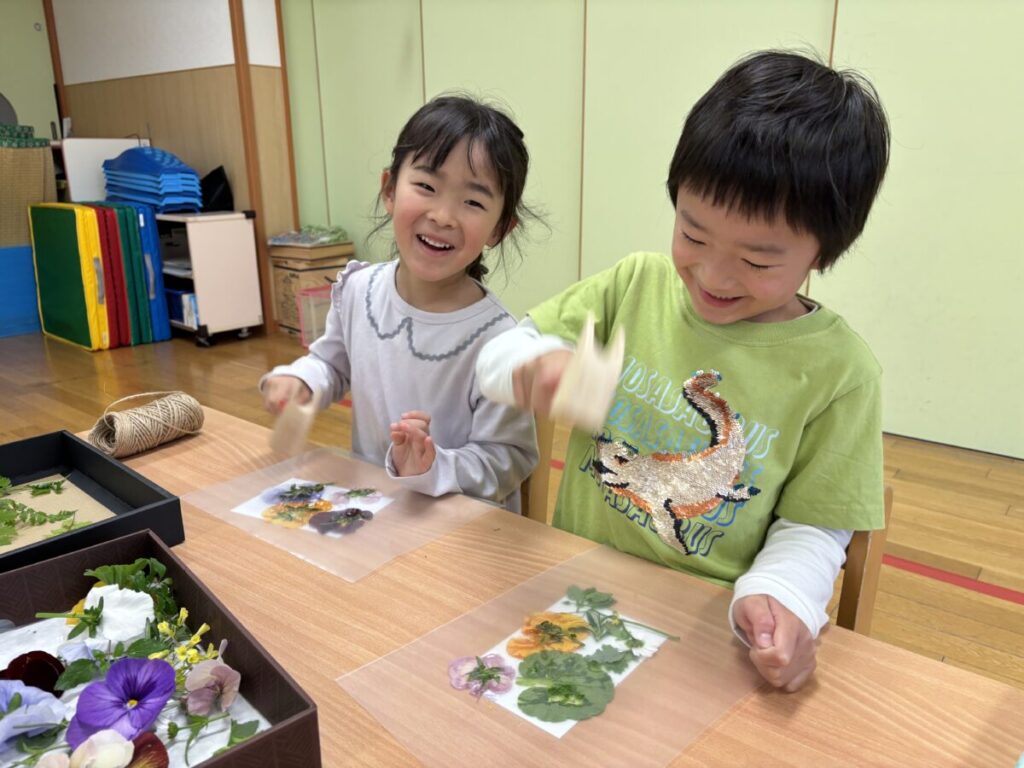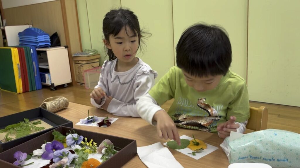 また、「お花の色とちょっと違うね」と、実際の色との違いに気づく場面もありました。