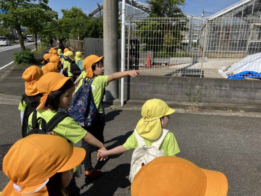 進級してから初めての散歩だったので、前日には園内で手を繋いで歩いたり、交通安全、ピクトグラムの活動を通して、散歩の予行練習を楽しみました。
