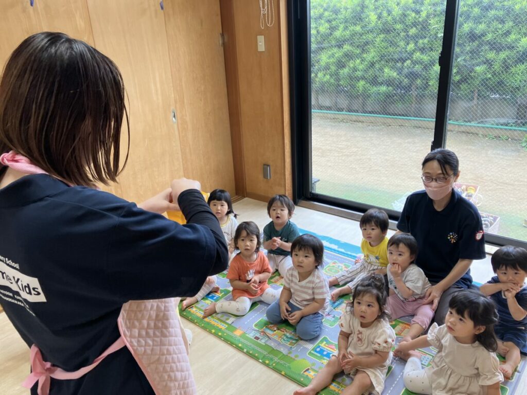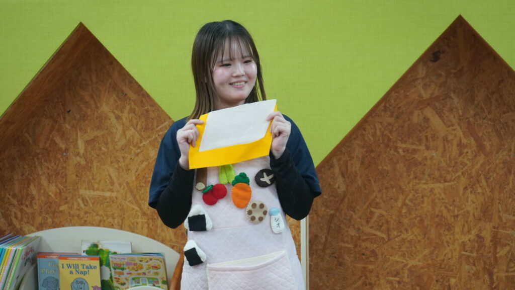 今日は、実際に子どもたちにエプロンシアターを披露しました。