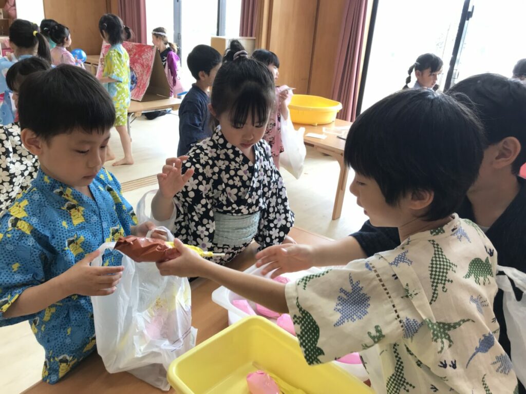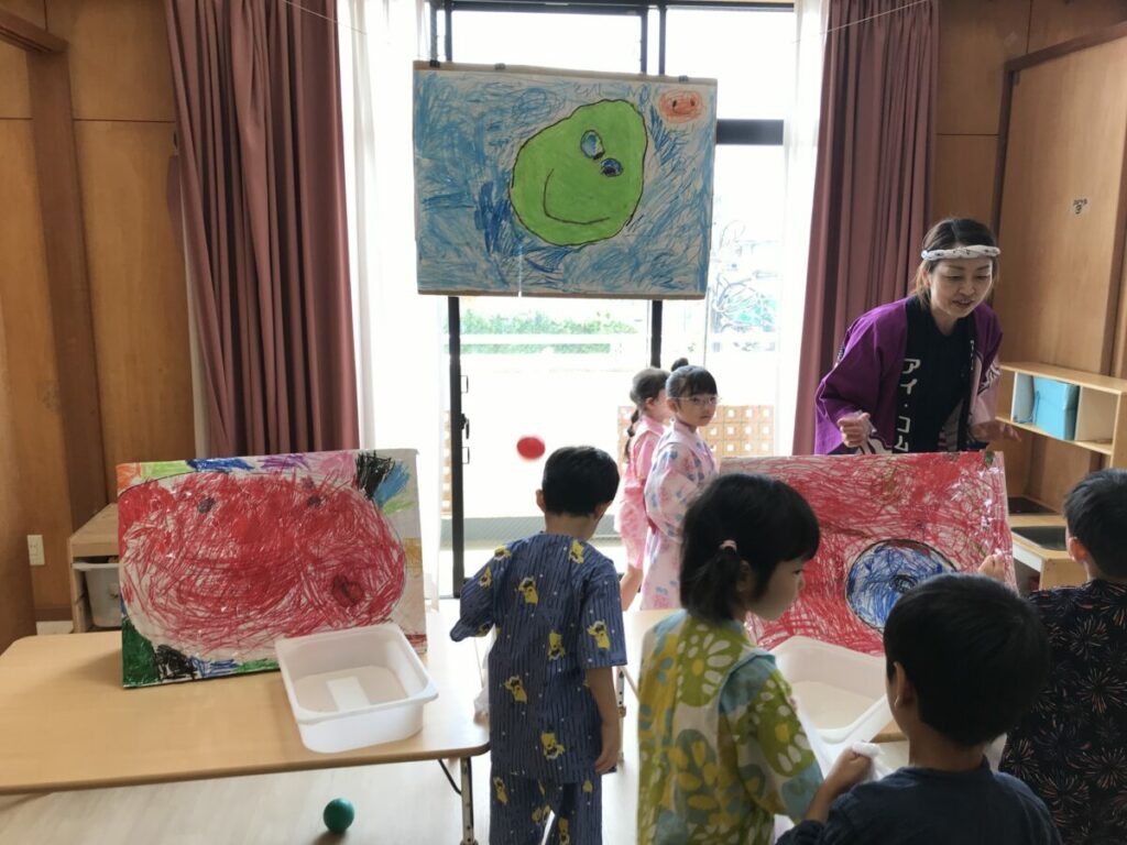 最後には、炭坑節、エビカニクス音頭の曲に合わせて、盆踊りをして夏まつりごっこを楽しみました。