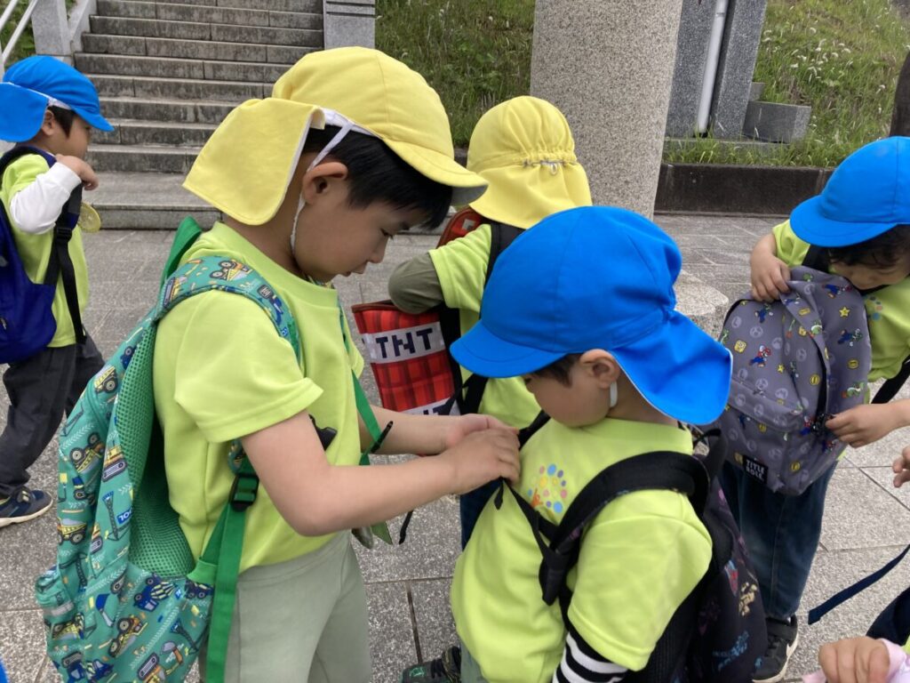 道中には、工場やお店があり「何を作っているのかな」と会話を楽しみながら歩きました。水分補給の際は、年長児が困っている友達を助けてあげる異年齢ならではの姿がたくさん見られ、成長を感じました。